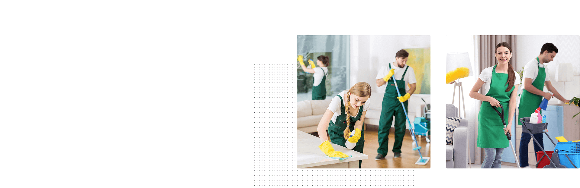 - Speciality cleaning services: carpet cleaning, window cleaning, and upholstery cleaning.
